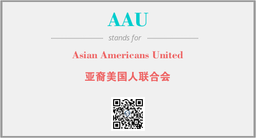 上述内容是“Asian Americans United”作为“AAU”的缩写,解释为“亚裔美国人联合会”时的信息,以及英文缩略词AAU所代表的英文单词,其对应的中文拼音、详细解释以及在英文中的流行度和相关分类、应用领域及应用示例等。