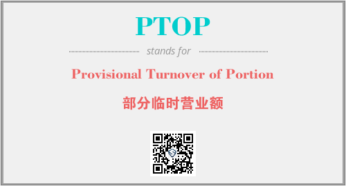 以上为Provisional Turnover of Portion英文缩略词PTOP的中文解释,以及该英文缩写在英语的流行度、分类和应用领域方面的信息。