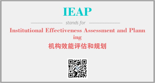 英文缩略词“IEAP”经常作为“Institutional Effectiveness Assessment and Planning”的英文缩写来使用,中文表示:“机构效能评估和规划”。本文将详细介绍英文缩写词IEAP所代表英文单词,其对应的中文拼音、详细解释以及在英语中的流行度。此外,还有关于缩略词IEAP的分类、应用领域及相关应用示例等。