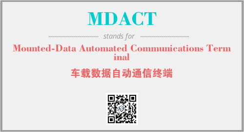英文缩略词“MDACT”经常作为“Mounted-Data Automated Communications Terminal”的英文缩写来使用,中文表示:“车载数据自动通信终端”。本文将详细介绍英文缩写词MDACT所代表英文单词,其对应的中文拼音、详细解释以及在英语中的流行度。此外,还有关于缩略词MDACT的分类、应用领域及相关应用示例等。