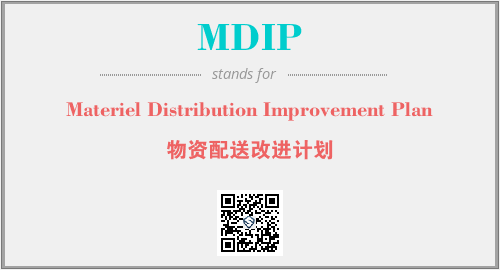 英文缩略词“MDIP”经常作为“Materiel Distribution Improvement Plan”的英文缩写来使用,中文表示:“物资配送改进计划”。本文将详细介绍英文缩写词MDIP所代表英文单词,其对应的中文拼音、详细解释以及在英语中的流行度。此外,还有关于缩略词MDIP的分类、应用领域及相关应用示例等。