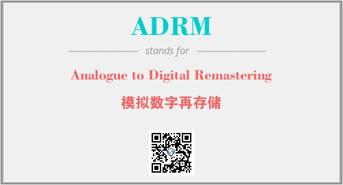 英文缩略词“ADRM”经常作为“Analogue to Digital Remastering”的英文缩写来使用,中文表示:“模拟数字再存储”。本文将详细介绍英文缩写词ADRM所代表英文单词,其对应的中文拼音、详细解释以及在英语中的流行度。此外,还有关于缩略词ADRM的分类、应用领域及相关应用示例等。