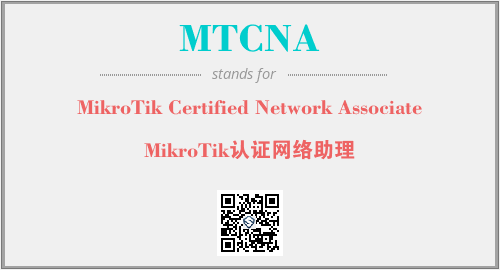 英文缩略词“MTCNA”经常作为“MikroTik Certified Network Associate”的英文缩写来使用,中文表示:“MikroTik认证网络助理”。本文将详细介绍英文缩写词MTCNA所代表英文单词,其对应的中文拼音、详细解释以及在英语中的流行度。此外,还有关于缩略词MTCNA的分类、应用领域及相关应用示例等。