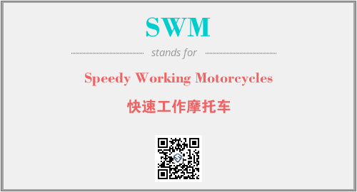 上述内容是“Speedy Working Motorcycles”作为“SWM”的缩写,解释为“快速工作摩托车”时的信息,以及英文缩略词SWM所代表的英文单词,其对应的中文拼音、详细解释以及在英文中的流行度和相关分类、应用领域及应用示例等。