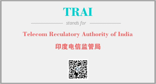 上述内容是“Telecom Reculatory Authority of India”作为“TRAI”的缩写,解释为“印度电信监管局”时的信息,以及英文缩略词TRAI所代表的英文单词,其对应的中文拼音、详细解释以及在英文中的流行度和相关分类、应用领域及应用示例等。