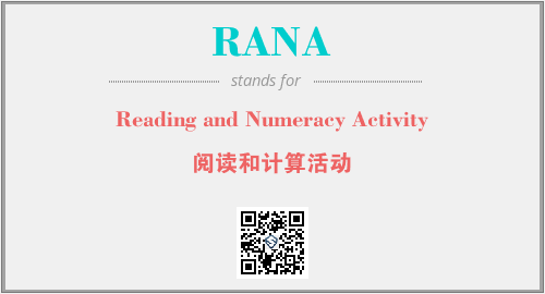 上述内容是“Reading and Numeracy Activity”作为“RANA”的缩写,解释为“阅读和计算活动”时的信息,以及英文缩略词RANA所代表的英文单词,其对应的中文拼音、详细解释以及在英文中的流行度和相关分类、应用领域及应用示例等。