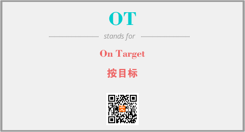 英文缩略词“OT”经常作为“On Target”的英文缩写来使用,中文表示:“按目标”。本文将详细介绍英文缩写词OT所代表英文单词,其对应的中文拼音、详细解释以及在英语中的流行度。此外,还有关于缩略词OT的分类、应用领域及相关应用示例等。