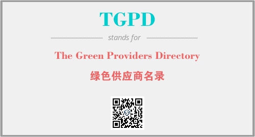 英文缩略词“TGPD”经常作为“The Green Providers Directory”的英文缩写来使用,中文表示:“绿色供应商名录”。本文将详细介绍英文缩写词TGPD所代表英文单词,其对应的中文拼音、详细解释以及在英语中的流行度。此外,还有关于缩略词TGPD的分类、应用领域及相关应用示例等。