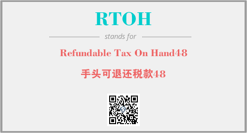 英文缩略词“RTOH”经常作为“Refundable Tax On Hand48”的英文缩写来使用,中文表示:“手头可退还税款48”。本文将详细介绍英文缩写词RTOH所代表英文单词,其对应的中文拼音、详细解释以及在英语中的流行度。此外,还有关于缩略词RTOH的分类、应用领域及相关应用示例等。