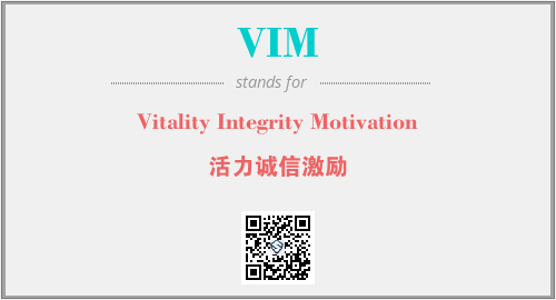 英文缩略词“VIM”经常作为“Vitality Integrity Motivation”的英文缩写来使用,中文表示:“活力诚信激励”。本文将详细介绍英文缩写词VIM所代表英文单词,其对应的中文拼音、详细解释以及在英语中的流行度。此外,还有关于缩略词VIM的分类、应用领域及相关应用示例等。