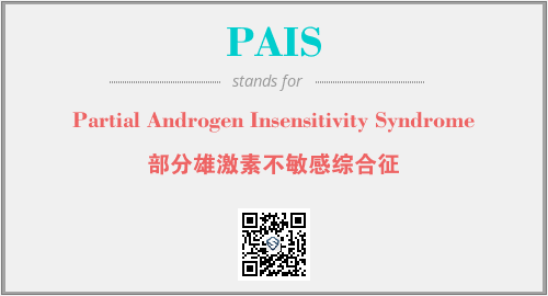 英文缩略词“PAIS”经常作为“Partial Androgen Insensitivity Syndrome”的英文缩写来使用,中文表示:“部分雄激素不敏感综合征”。本文将详细介绍英文缩写词PAIS所代表英文单词,其对应的中文拼音、详细解释以及在英语中的流行度。此外,还有关于缩略词PAIS的分类、应用领域及相关应用示例等。