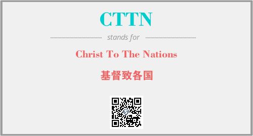 上述内容是“Christ To The Nations”作为“CTTN”的缩写,解释为“基督致各国”时的信息,以及英文缩略词CTTN所代表的英文单词,其对应的中文拼音、详细解释以及在英文中的流行度和相关分类、应用领域及应用示例等。