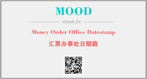 英文缩略词“MOOD”经常作为“Money Order Office Datestamp”的英文缩写来使用,中文表示:“汇票办事处日期戳”。本文将详细介绍英文缩写词MOOD所代表英文单词,其对应的中文拼音、详细解释以及在英语中的流行度。此外,还有关于缩略词MOOD的分类、应用领域及相关应用示例等。