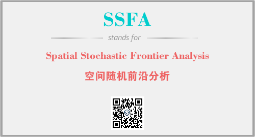 上述内容是“Spatial Stochastic Frontier Analysis”作为“SSFA”的缩写,解释为“空间随机前沿分析”时的信息,以及英文缩略词SSFA所代表的英文单词,其对应的中文拼音、详细解释以及在英文中的流行度和相关分类、应用领域及应用示例等。