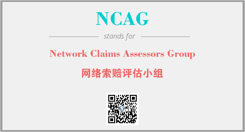 上述内容是“Network Claims Assessors Group”作为“NCAG”的缩写,解释为“网络索赔评估小组”时的信息,以及英文缩略词NCAG所代表的英文单词,其对应的中文拼音、详细解释以及在英文中的流行度和相关分类、应用领域及应用示例等。