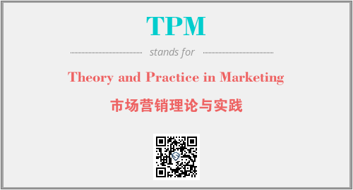 上述内容是“Theory and Practice in Marketing”作为“TPM”的缩写,解释为“市场营销理论与实践”时的信息,以及英文缩略词TPM所代表的英文单词,其对应的中文拼音、详细解释以及在英文中的流行度和相关分类、应用领域及应用示例等。