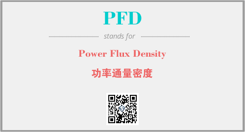 上述内容是“Power Flux Density”作为“PFD”的缩写,解释为“功率通量密度”时的信息,以及英文缩略词PFD所代表的英文单词,其对应的中文拼音、详细解释以及在英文中的流行度和相关分类、应用领域及应用示例等。
