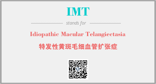 以上为Idiopathic Macular Telangiectasia英文缩略词IMT的中文解释,以及该英文缩写在英语的流行度、分类和应用领域方面的信息。