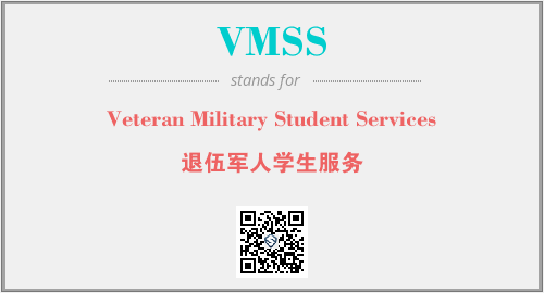 英文缩略词“VMSS”经常作为“Veteran Military Student Services”的英文缩写来使用,中文表示:“退伍军人学生服务”。本文将详细介绍英文缩写词VMSS所代表英文单词,其对应的中文拼音、详细解释以及在英语中的流行度。此外,还有关于缩略词VMSS的分类、应用领域及相关应用示例等。