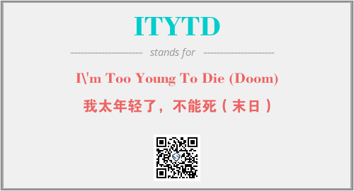 英文缩略词“ITYTD”经常作为“I\'m Too Young To Die (Doom)”的英文缩写来使用,中文表示:“我太年轻了,不能死(末日)”。本文将详细介绍英文缩写词ITYTD所代表英文单词,其对应的中文拼音、详细解释以及在英语中的流行度。此外,还有关于缩略词ITYTD的分类、应用领域及相关应用示例等。