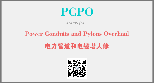 英文缩略词“PCPO”经常作为“Power Conduits and Pylons Overhaul”的英文缩写来使用,中文表示:“电力管道和电缆塔大修”。本文将详细介绍英文缩写词PCPO所代表英文单词,其对应的中文拼音、详细解释以及在英语中的流行度。此外,还有关于缩略词PCPO的分类、应用领域及相关应用示例等。