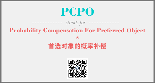 上述内容是“Probability Compensation For Preferred Objects”作为“PCPO”的缩写,解释为“首选对象的概率补偿”时的信息,以及英文缩略词PCPO所代表的英文单词,其对应的中文拼音、详细解释以及在英文中的流行度和相关分类、应用领域及应用示例等。