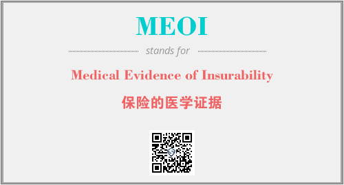 上述内容是“Medical Evidence of Insurability”作为“MEOI”的缩写,解释为“保险的医学证据”时的信息,以及英文缩略词MEOI所代表的英文单词,其对应的中文拼音、详细解释以及在英文中的流行度和相关分类、应用领域及应用示例等。