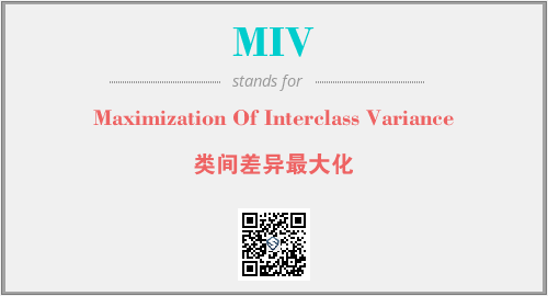 上述内容是“Maximization Of Interclass Variance”作为“MIV”的缩写,解释为“类间差异最大化”时的信息,以及英文缩略词MIV所代表的英文单词,其对应的中文拼音、详细解释以及在英文中的流行度和相关分类、应用领域及应用示例等。