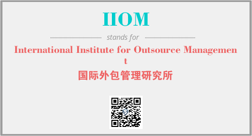 上述内容是“International Institute for Outsource Management”作为“IIOM”的缩写,解释为“国际外包管理研究所”时的信息,以及英文缩略词IIOM所代表的英文单词,其对应的中文拼音、详细解释以及在英文中的流行度和相关分类、应用领域及应用示例等。