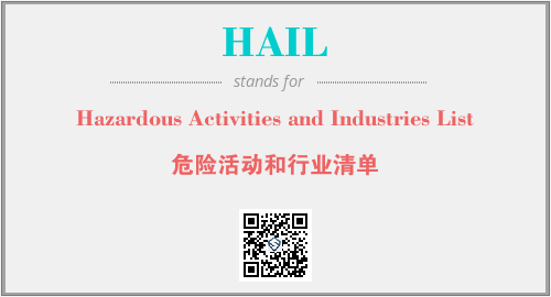上述内容是“Hazardous Activities and Industries List”作为“HAIL”的缩写,解释为“危险活动和行业清单”时的信息,以及英文缩略词HAIL所代表的英文单词,其对应的中文拼音、详细解释以及在英文中的流行度和相关分类、应用领域及应用示例等。