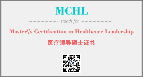 上述内容是“Master\'s Certification in Healthcare Leadership”作为“MCHL”的缩写,解释为“医疗领导硕士证书”时的信息,以及英文缩略词MCHL所代表的英文单词,其对应的中文拼音、详细解释以及在英文中的流行度和相关分类、应用领域及应用示例等。