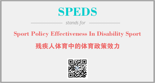 上述内容是“Sport Policy Effectiveness In Disability Sport”作为“SPEDS”的缩写,解释为“残疾人体育中的体育政策效力”时的信息,以及英文缩略词SPEDS所代表的英文单词,其对应的中文拼音、详细解释以及在英文中的流行度和相关分类、应用领域及应用示例等。
