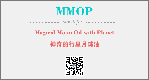 上述内容是“Magical Moon Oil with Planet”作为“MMOP”的缩写,解释为“神奇的行星月球油”时的信息,以及英文缩略词MMOP所代表的英文单词,其对应的中文拼音、详细解释以及在英文中的流行度和相关分类、应用领域及应用示例等。