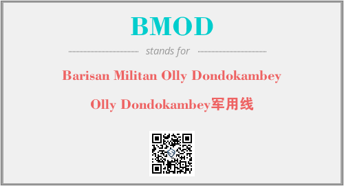 上述内容是“Barisan Militan Olly Dondokambey”作为“BMOD”的缩写,解释为“Olly Dondokambey军用线”时的信息,以及英文缩略词BMOD所代表的英文单词,其对应的中文拼音、详细解释以及在英文中的流行度和相关分类、应用领域及应用示例等。