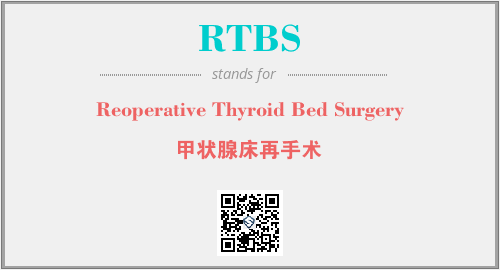 上述内容是“Reoperative Thyroid Bed Surgery”作为“RTBS”的缩写,解释为“甲状腺床再手术”时的信息,以及英文缩略词RTBS所代表的英文单词,其对应的中文拼音、详细解释以及在英文中的流行度和相关分类、应用领域及应用示例等。