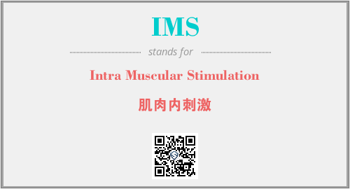 英文缩略词“IMS”经常作为“Intra Muscular Stimulation”的英文缩写来使用,中文表示:“肌肉内刺激”。本文将详细介绍英文缩写词IMS所代表英文单词,其对应的中文拼音、详细解释以及在英语中的流行度。此外,还有关于缩略词IMS的分类、应用领域及相关应用示例等。
