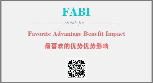 英文缩略词“FABI”经常作为“Favorite Advantage Benefit Impact”的英文缩写来使用,中文表示:“最喜欢的优势优势影响”。本文将详细介绍英文缩写词FABI所代表英文单词,其对应的中文拼音、详细解释以及在英语中的流行度。此外,还有关于缩略词FABI的分类、应用领域及相关应用示例等。