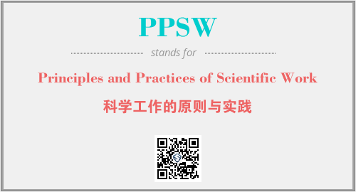 上述内容是“Principles and Practices of Scientific Work”作为“PPSW”的缩写,解释为“科学工作的原则与实践”时的信息,以及英文缩略词PPSW所代表的英文单词,其对应的中文拼音、详细解释以及在英文中的流行度和相关分类、应用领域及应用示例等。