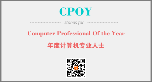 上述内容是“Computer Professional Of the Year”作为“CPOY”的缩写,解释为“年度计算机专业人士”时的信息,以及英文缩略词CPOY所代表的英文单词,其对应的中文拼音、详细解释以及在英文中的流行度和相关分类、应用领域及应用示例等。