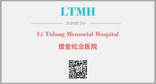 英文缩略词“LTMH”经常作为“Lt Tidang Memorial Hospital”的英文缩写来使用,中文表示:“提堂纪念医院”。本文将详细介绍英文缩写词LTMH所代表英文单词,其对应的中文拼音、详细解释以及在英语中的流行度。此外,还有关于缩略词LTMH的分类、应用领域及相关应用示例等。