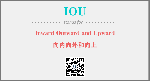 上述内容是“Inward Outward and Upward”作为“IOU”的缩写,解释为“向内向外和向上”时的信息,以及英文缩略词IOU所代表的英文单词,其对应的中文拼音、详细解释以及在英文中的流行度和相关分类、应用领域及应用示例等。