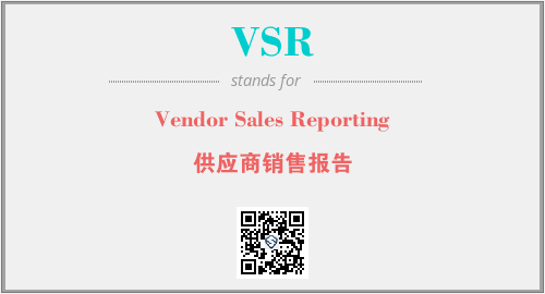 英文缩略词“VSR”经常作为“Vendor Sales Reporting”的英文缩写来使用,中文表示:“供应商销售报告”。本文将详细介绍英文缩写词VSR所代表英文单词,其对应的中文拼音、详细解释以及在英语中的流行度。此外,还有关于缩略词VSR的分类、应用领域及相关应用示例等。