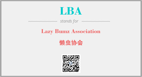 上述内容是“Lazy Bumz Association”作为“LBA”的缩写,解释为“懒虫协会”时的信息,以及英文缩略词LBA所代表的英文单词,其对应的中文拼音、详细解释以及在英文中的流行度和相关分类、应用领域及应用示例等。
