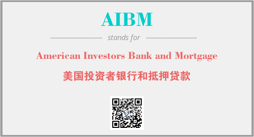 上述内容是“American Investors Bank and Mortgage”作为“AIBM”的缩写,解释为“美国投资者银行和抵押贷款”时的信息,以及英文缩略词AIBM所代表的英文单词,其对应的中文拼音、详细解释以及在英文中的流行度和相关分类、应用领域及应用示例等。