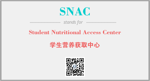 英文缩略词“SNAC”经常作为“Student Nutritional Access Center”的英文缩写来使用,中文表示:“学生营养获取中心”。本文将详细介绍英文缩写词SNAC所代表英文单词,其对应的中文拼音、详细解释以及在英语中的流行度。此外,还有关于缩略词SNAC的分类、应用领域及相关应用示例等。