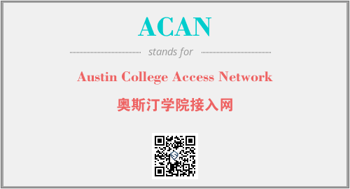 上述内容是“Austin College Access Network”作为“ACAN”的缩写,解释为“奥斯汀学院接入网”时的信息,以及英文缩略词ACAN所代表的英文单词,其对应的中文拼音、详细解释以及在英文中的流行度和相关分类、应用领域及应用示例等。