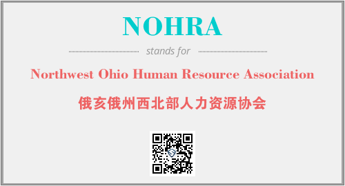上述内容是“Northwest Ohio Human Resource Association”作为“NOHRA”的缩写,解释为“俄亥俄州西北部人力资源协会”时的信息,以及英文缩略词NOHRA所代表的英文单词,其对应的中文拼音、详细解释以及在英文中的流行度和相关分类、应用领域及应用示例等。