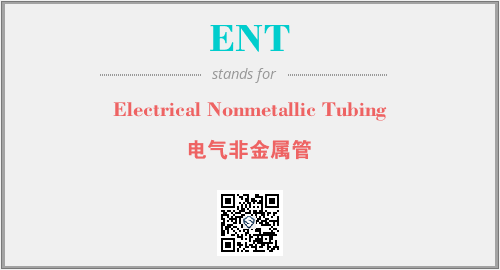 英文缩略词“ENT”经常作为“Electrical Nonmetallic Tubing”的英文缩写来使用,中文表示:“电气非金属管”。本文将详细介绍英文缩写词ENT所代表英文单词,其对应的中文拼音、详细解释以及在英语中的流行度。此外,还有关于缩略词ENT的分类、应用领域及相关应用示例等。