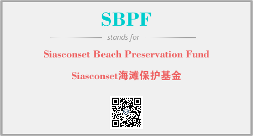 上述内容是“Siasconset Beach Preservation Fund”作为“SBPF”的缩写,解释为“Siasconset海滩保护基金”时的信息,以及英文缩略词SBPF所代表的英文单词,其对应的中文拼音、详细解释以及在英文中的流行度和相关分类、应用领域及应用示例等。