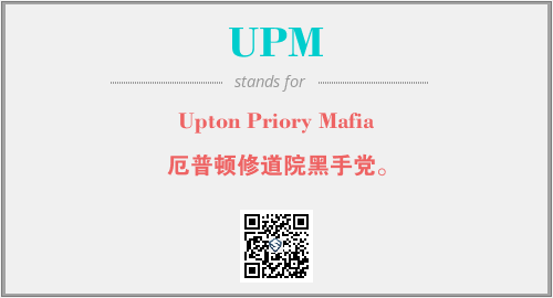 英文缩略词“UPM”经常作为“Upton Priory Mafia”的英文缩写来使用,中文表示:“厄普顿修道院黑手党。”。本文将详细介绍英文缩写词UPM所代表英文单词,其对应的中文拼音、详细解释以及在英语中的流行度。此外,还有关于缩略词UPM的分类、应用领域及相关应用示例等。